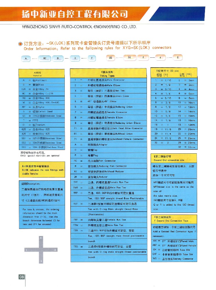 卡套接頭的工作原理是將鋼管插入卡套內,利用卡套螺母鎖緊,抵觸卡套,切入管子而密封。它與鋼管連接時不需焊接,有利于防火、防爆和高空作業,并能消除焊接,不慎帶來的弊端。因而它是煉油、化工、石油、食品、制藥、儀器儀表等系統自控裝置管路中的一種較為好的連接件。適用于油、氣、水等管路連接。裝配方法:卡套式管接頭的性能好壞除了與零件的材料,制造精度,熱處理等有關外,與裝配質量的關系也很重要,因此應按如下方法進行裝配。1:按需要長度在專用機床上切斷管子,也可以手工鋸切,切面與管子中心線垂直度不得大于管子外景公差之半2:除去管端的內、外圓毛刺,金屬屑及污垢。3:除去管接頭各零件的防銹油及污垢。4:按順序將落幕,卡套套在管子上,然后將管子插入接頭體內錐孔底部,方正卡套。在旋緊螺母的同時轉動管子直至不動為止,再旋緊螺母1~1 1/3圈。